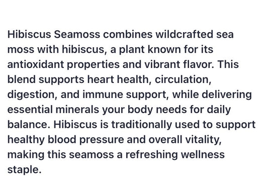 HIBISCUS SEAMOSS,this is perfect for those with low iron, heart ,blood ,and cholesterol issues